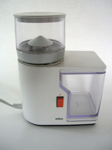 Die Kaffeemühle KMM 1 ist ein Dauerbrenner im Programm der Braun AG. Ein perfektes Beispiel für Produktdesign, dass sich aufgrund der sorgfältigen Gestaltung über Jahrzehnte auf dem Markt behaupten kann. Das abgebildete Model wurde zwar im Laufe der Jahre in den Details verändert, der Grundaufbau aber blieb bis heute gleich.