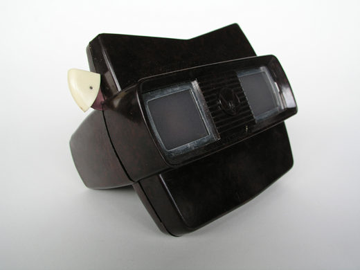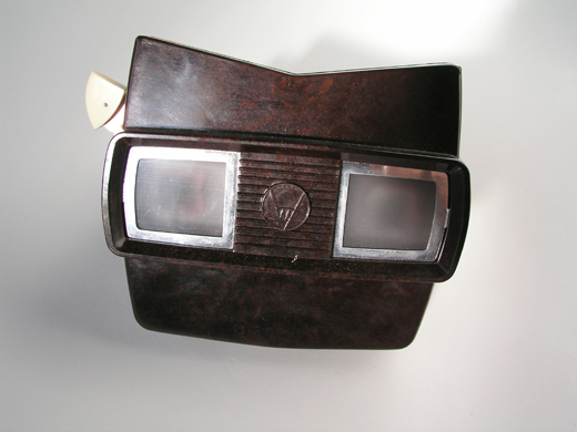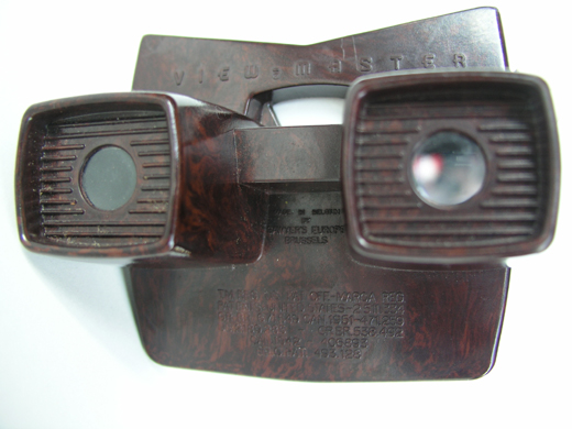 Erfinder des View-Master ist der 1903 in München geborene Klavier- und Orgelbauer Wilhelm Gruber. Anfang der 20er Jahre emigrierte Gruber in die Vereinigten Staaten nach Portland, Oregon und hatte als begeisterter Stereofotograf die Idee, die altmodischen Stereoskope zu verbessern. Er entwickelte das System der runden Scheiben mit sieben Bildpaaren und den dazu passenden Betrachter. Mit der 1938 gemachten Bekanntschaft mit Harold Graves, dem Präsidenten der Sawyer´s Corporation, des in den U.S.A. größten Herstellers von Gruß- und szenischen Postkarten (Ansichtskarten aus echten Fotos) und dessen Teilhabern Edwin und Fred Meyers, die begeistert waren von Grubers Erfindung, begann man gemeinsam, die Idee umzusetzen. 1939 wurde das View-Master-System erstmalig auf der Weltausstellung in New York als Alternative zur Ansichtskarte einem breiten Publikum vorgestellt. Mit durchschlagendem Erfolg! Es begann der Siegeszug der runden Scheiben, man schätzt das bis heute rund eine Milliarde davon verkauft worden sind.